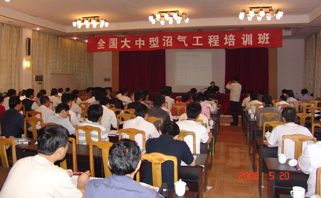 参加本次培训班共有包括台湾省在内的24个省市自治区的119名学员,沼气所组织了6位专家教授讲课,学员系统的学习了大中型沼气工程项目申报程序; 大中型沼气工程主要建设内容和验收标准; 沼气工程进、出料服务专用设备的使用及维护管理; 大中型沼气工程安全供气(包括集中供气); 沼气池的抗漏质量检查与补修等课程,还介绍了国家有关大中型沼气工程的发展规划及战略部署,以及沼气产品最新科研成果等内容,培训班学员还参观了四川菊乐乳业有限公司的大中型沼气工程施工现场和沼气产品生产厂。