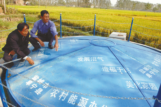 今年以来,盐城市着重在50个重点村建设样板秸秆联户沼气工程,沼气通过集中管网,统一运送到农户家中,成为中心村居住区实用的环保清洁新能源。目前全市已新建“一池三改”户用沼气池2万座、规模化畜禽场沼气工程200处、物业化管理站50个、生活污水净化沼气池1100座。图为日前我市首座秸秆联户沼气工程在阜宁县三灶镇楼子村试点成功。