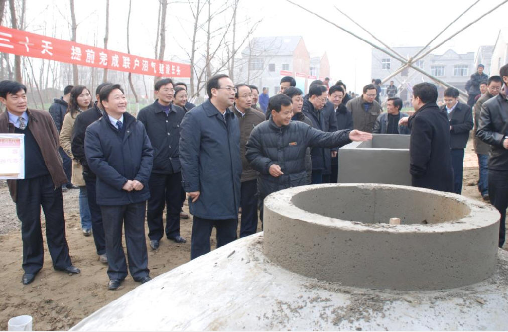 元月8日,大雪初霁,天气晴朗。农业部部长孙政才一行在湖北省委常委、副省长汤涛,省农业厅厅长陈柏槐等人陪同下考察了湖北仙桃市毛嘴镇小桥口村三组联户沼气建设项目。该村居民小区后院6处联户沼气池先后开工,一字排开,每口池子旁竖着的牌子上清楚显示着联户户主的姓名及建池规模,6处池子建成后可供24户居民日常用气。孙部长在现场详细询问了该村08年新增联户沼气建设内容,包括建池时间、建池规模、建池材料、建池造价等情况。接着,孙部长来到毛咀镇农村能源办公室,向该镇能源服务管理员邓德瑜详细询问了毛嘴镇沼气服务管理的现状与成效,查看了建池、维修台帐及仙桃市生态能源局下发省能源办转农业部《关于进一步加快2008年新增农业项目建设进度》的紧急通知,强调要抓紧时间完成新增项目建设,在规定时间内没有完成任务的将实行“捆绑式”惩罚。最后,孙部长与全体基层农技人员合影,并祝愿大家新年快乐。