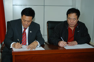 会上,省农委韩贵清副主任与项目县(市、区)领导签订农村沼气项目《责任书》。