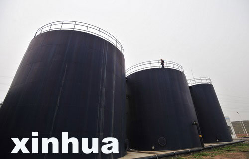 3月12日,武汉市陈家冲垃圾填埋场工作人员在渗滤液处理罐上查看渗滤液情况。陈家冲垃圾场采用了一系列先进的设备和技术,在处理垃圾的过程中注意保护周边环境,并对同时产生的沼气等再生能源加以利用。垃圾场每天处理垃圾2000吨,占武汉市全市垃圾的1/3。周超 摄