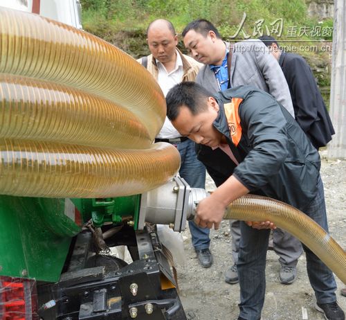 人民网重庆视窗4月22日电 昨日,黔江区农委技术人员现场示范沼气池抽渣车操作技能。今年,该区出资45万元购置回6辆沼气抽渣车,分发到沙坝、中塘、小南海等6个乡镇,方便农户清理沼气池内的沼液、沼渣的同时,减轻了人工清渣的劳动强度和节约时间,能更好地维护沼气池,确保沼气池发挥最大社会效益和经济效益。