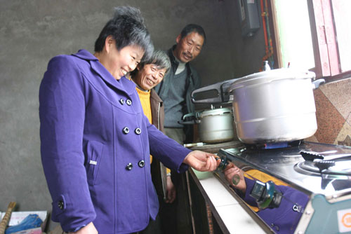1月12日中午,广安市广安区代市镇龙山村村民廖永芬正在用新安装的沼气灶煮饭。去年,广安区把解决农村农村能源短缺,倡导低碳环保,为农民建沼气池作为民生工程来抓,出台优惠政策,采取政府补一点、农民凑一点、社会助一点的办法共建成沼气池1.1万口,惠及5万农民。