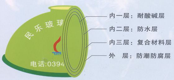 沼气池是由一种新型玻璃钢复合材料制成,成型产品重量轻,强度高、抗老化、耐腐蚀、无渗漏。产品池体由上、下两半部分组装成型,并分别没有出气孔,进、出料口和水压间,其池壁厚度为8-10mm,据实验室检测,本产品的拉伸强度的94.1Mpa,弯曲强度为110Mpa,具有很高的机械强度和延伸率,大大超过了水压式沼气所需的强度需求。